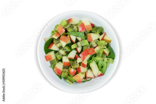Apple and Kiwi Fruit Salad on White Background with Clipping Path