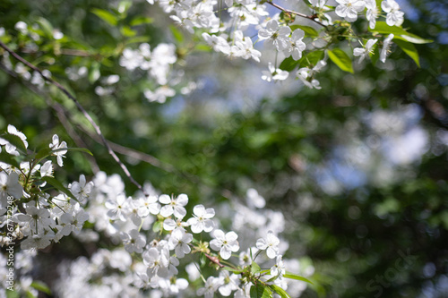 Apple tree branch with beautiful white flowers, shot close-up