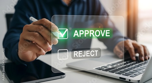 Approve or reject online document concept, digital signature, business approval process