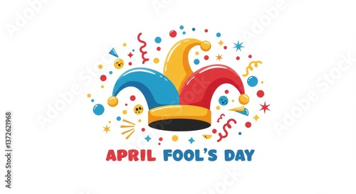April Fools Day Jester Hat Design - Colorful illustration of a jester hat, symbolizing fun, laughter, pranks, surprises, and celebration for April Fools' Day