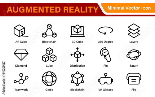 AR VR Line Icon Set – Minimal Vector Outline Illustrations for Augmented Reality, Virtual World, Futuristic Tech, Gaming, Metaverse, UX Design