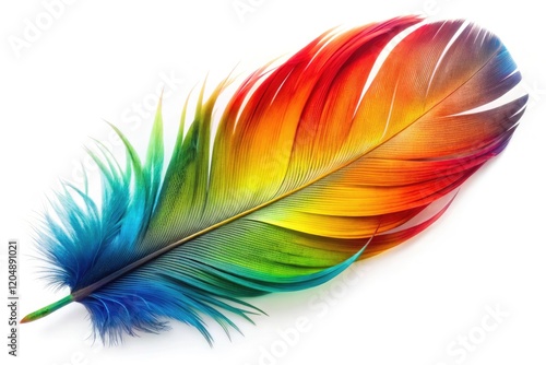 Ara Parrot Feather, Isolated White Background, Calligraphy, Bird Feather, Fashion Photography