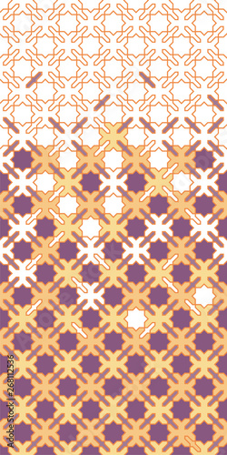 Arabesque vector seamless pattern. Geometric halftone texture with color tile disintegration or breaking