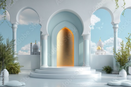 Arabic style minimal scene with white podium.