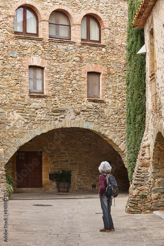 Arcades. Medieval village of Monells. Girona, Costa Brava. Catalunya. Spain