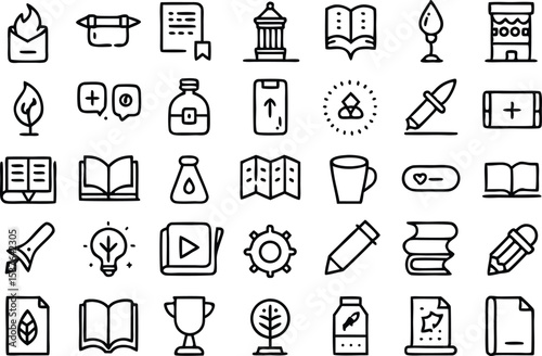 Arcane scrolls outline icon set a collection of mystical design elements isolated on transparent background