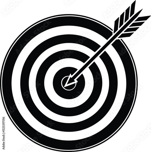 Archery target silhouette, bullseye icon vector, shooting range symbol, black aim graphic, minimal sport design