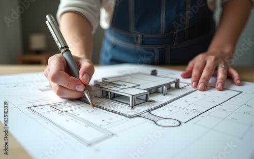 architect design working drawing sketch plans blueprints and making architectural construction model in architect studio. High quality