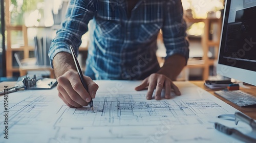 Architect Drawing Floor Plan with Pen on Paper