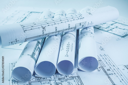 Architect rolls and house plans, close up
