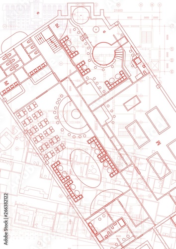 Architectural background with technical drawings. Blueprints plan texture. Drawing part of architectural project.