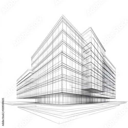 Architectural blueprint depicting a modern multi-story building design with a unique geometric structure