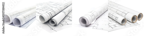 Architectural blueprints technical drawings and engineering plans for commercial and residential construction project planning and design Detailed draft sketches layouts