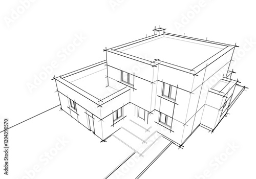 Architectural sketch of modern building vector 3d illustration