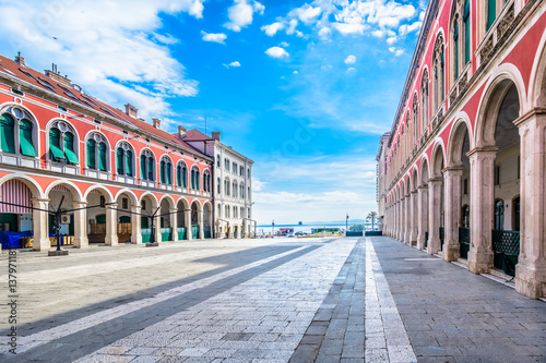 Architecture mediterranean square. / Mediterranean traditional architecture in scenic city center of town Split, Croatia.