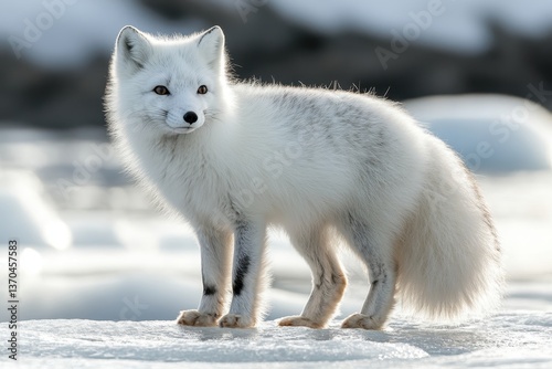 Arctic fox explores icy landscape in a winter setting during daylight hours in a remote location