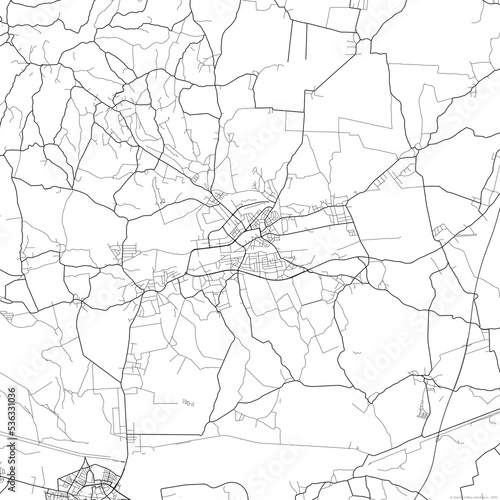 Area map of Cakovec Croatia with white background and black roads