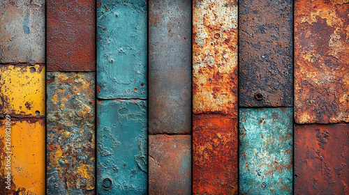 arious metal textures with rust and patina arranged vertically, highlighting a spectrum of colors and corrosion patterns, symbolizing the passage of time and natural decay