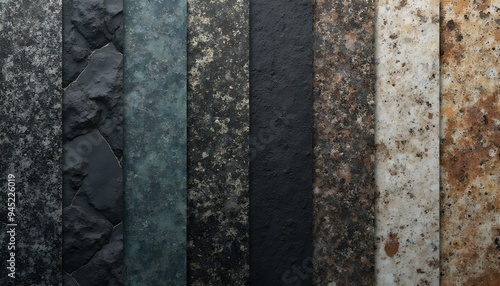 arious stone textures including granite, slate, sandstone, basalt, and marble, showcasing a natural and organic style. Emphasizes patterns, color variations, and stone complexity