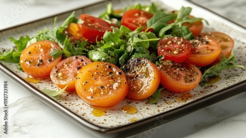 Aromatic Roasted Tomato and Arugula Salad on a Rustic Plate