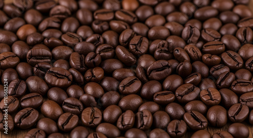 Aromatic symphony: closeup view of roasted coffee beans in an inviting arrangement