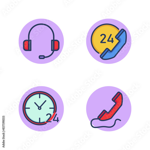 Around clock support service line icon set. Call center, telephone call, 24 and 7, day and night. Consumer service concept. Vector illustration for web design and apps
