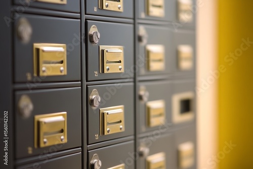 Array of Dark Grey Security Safes, Vaults, and Private Deposit Boxes in Banking Buildings