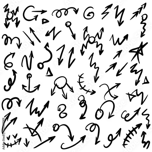 Arrow doodles vector. A set of simple sketches of arrows. Up, down, left, right ones. The effect of a pencil sketch isolated on white background. Vector eps 10.