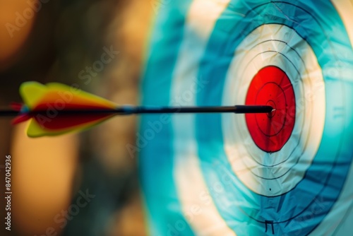 Arrow Hitting Bullseye in Olympic Archery Field with Motion Blur - Precision and Focus Concept