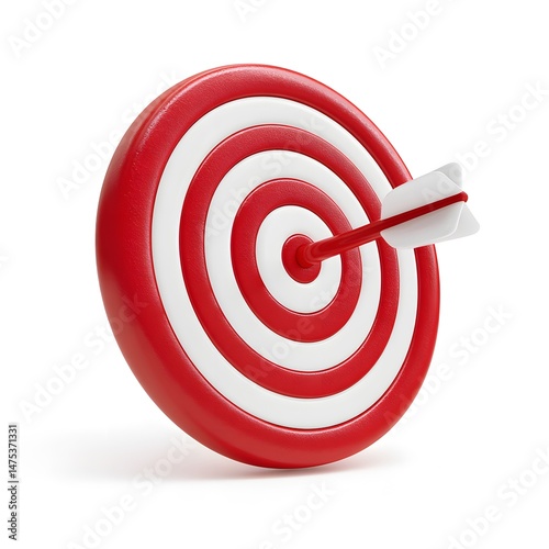 Arrow hitting bullseye of red and white target for perfect aim, accuracy, goal, achievement, and success.