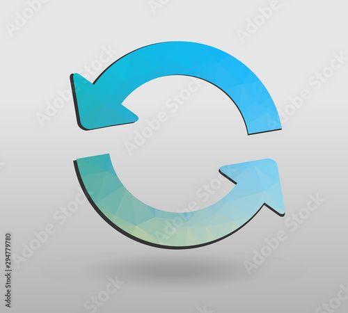 Arrow refresh icon reload sign with polygonal triangles style. colorful arrow shape in modern polygonal crystal style on white background.