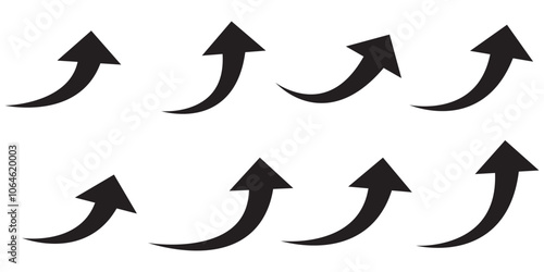 Arrow up icons. Set of curve rise increase arrows. Growth pictogram isolated. Vector illustration.
