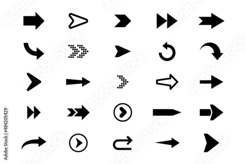 Arrows are a large black set of icons. Arrow icon. Collection of vector arrows. Arrow. The cursor. Modern simple arrows. Vector illustration