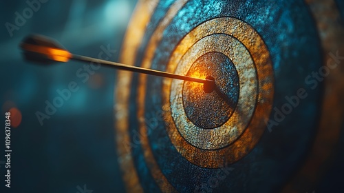 Arrows flying toward a target, one landing perfectly in the bullseye, representing teamwork and success