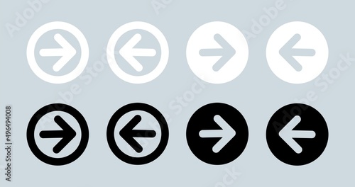 Arrows icon in circle with black and white colours. Arrow icon set for forward click buttons.