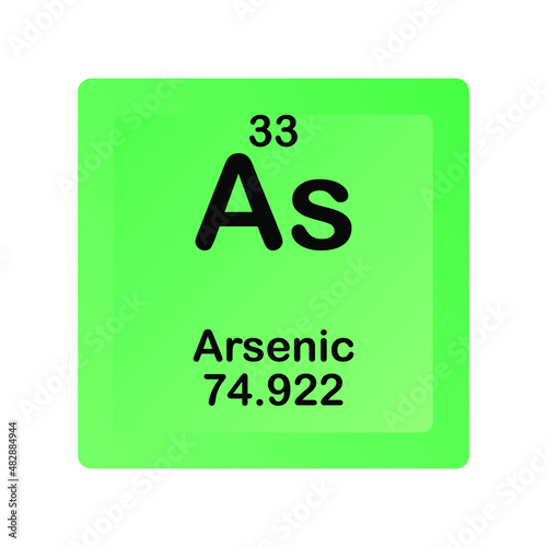 Arsenic As Chemical Element vector illustration diagram, with atomic number and mass. Simple flat dark gradient design for education, lab, science class.