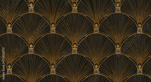 Art Deco Fan Pattern with Geometric Gold and Black Design.