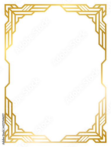Art Deco gold frame vintage frame line geometric wedding label card frame png transparent background