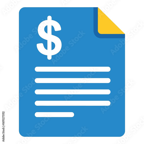 Art of blue document icon with a dollar sign and lines representing text, isolated on white background