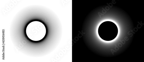 Art sun background. Tattoo template or logo with lines. Black shape on a white background and the same white shape on the black side.