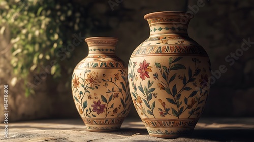 Artfully adorned Greek amphora with delicate floral patterns, representing the timeless beauty of ancient Greek craftsmanship
