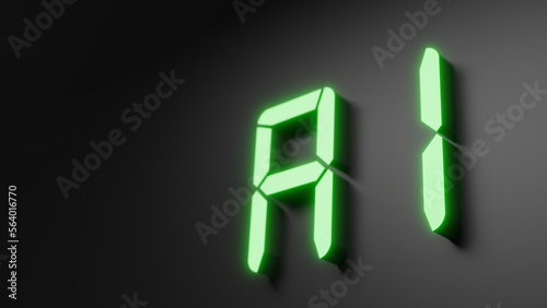 Artificial intelligence 3d initials shining on green light with dark background and copy space