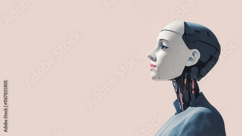 Artificial Intelligence Chatbot Concept. Robotic head profile with a neutral expression against a soft background.