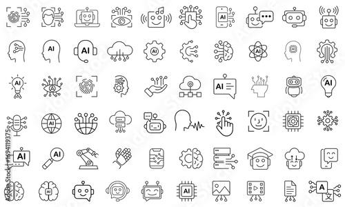 Artificial intelligence icon set in outline style isolated on white background. Ai icons in line style. Smart technology outline icons. ai, artificial, intelligence, chatboat, automatic, artificial