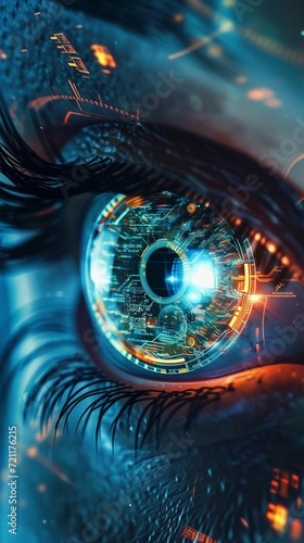 Artificial Intelligence illustration of Cybernetic Eye, background image, generative AI