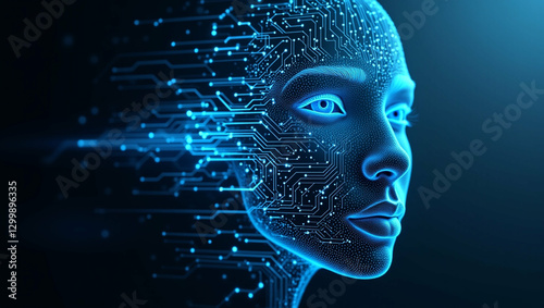 Artificial Intelligence portrait with futuristic digital circuits design