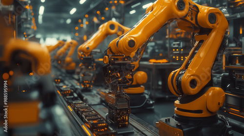 Artificial intelligence robot arms working efficiently in an automated production line, revolutionizing modern manufacturing with precision and speed.