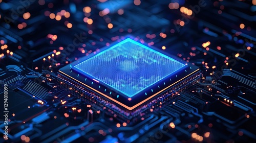 Artificial intelligence technology and neural networks enhance big data cybersecurity, securing data streams effectively. A vibrant, futuristic microchip surrounded by intricate circuitry