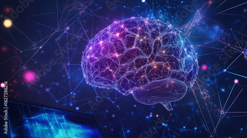 Artificial neural network or artificial intelligence brain on a tablet or smartphone. Digital brain science for future learning. modern technology innovation concept background