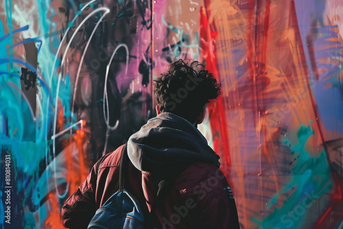 Artist at work on a colorful graffiti wall in urban setting